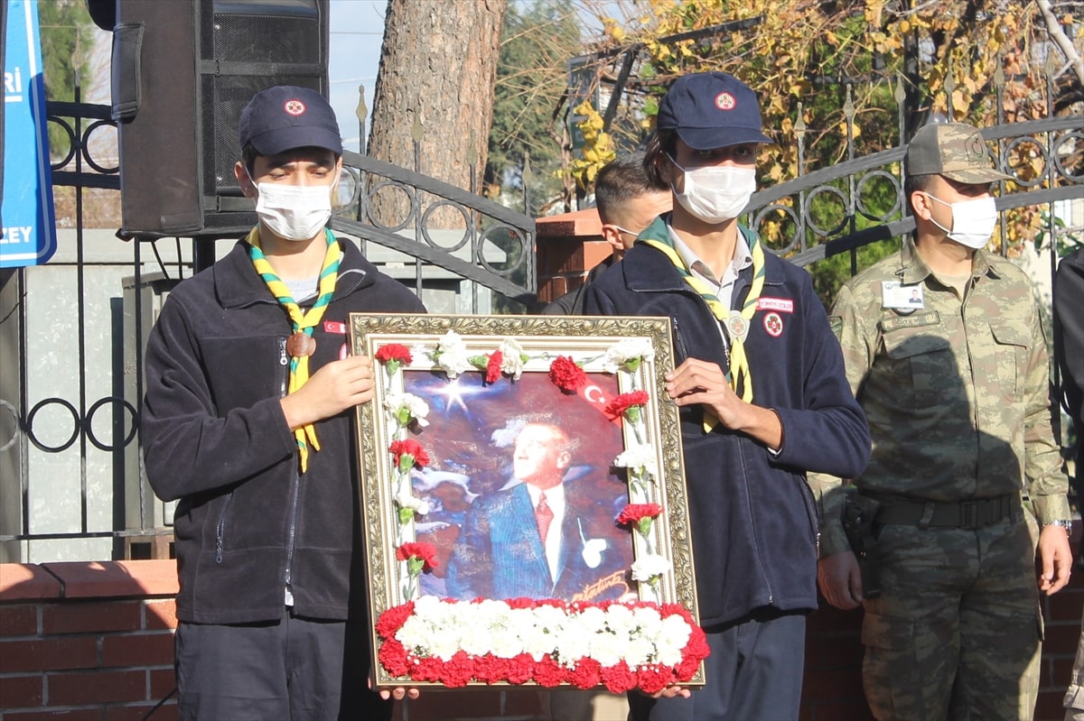 Devlet Bahçeli Meydanı'nda Atatürk Anıtı önündeki törende ise anıta çelenkler sunuldu, saygı duruşunda bulunuldu, İstiklal Marşı okundu.